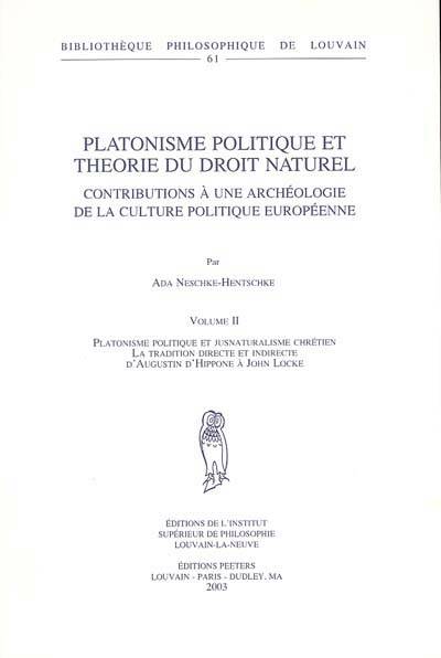 Platonisme politique et théorie du droit naturel. Contributions à une archéologie de la culture politique européenne. Volume II. Platonisme politique et jusnaturalisme chrétien. La tradition directe et indirecte d'Augustin d'Hippone à John Locke