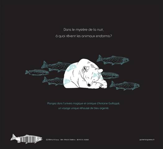 Dans le mystère de la nuit, à quoi rêvent les animaux endormis ? Plongez dans l'univers magique et onirique d'Antoine Guilloppé, un voyage unique réhaussé de bleu argenté.
