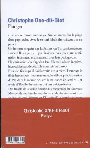 "Ils l'ont retrouvée comme ça. Nue et morte. Sur la plage d'un pays arabe. Avec le sel qui faisait des cristaux sur sa peau." Un homme enquête sur la femme qu'il a passionnément aimée. Elle est partie il y a plusieurs mois, pour une destination inconnue, le laissant seul avec leur petit garçon. Elle était artiste, elle s'appelait Paz. Elle était solaire, inquiète, incroyablement douée. Elle étouffait en Europe. Pour son fils, à qui il doit la vérité sur sa mère, il remonte le fil de leur amour - leur rencontre, les débuts puis l'ascension de Paz dans le monde de l'art, la naissance de l'enfant - et essaie d'élucider les raisons qui ont précipité sa fin. Des trésors de la vieille Europe aux mégapoles du Nouveau Monde, du marbre des musées au sable des rivages où l'on se lave de tout, Plonger est l'histoire d'un couple de notre temps. En proie à tous les vertiges d'une époque où il devient de plus en plus difficile d'aimer.
