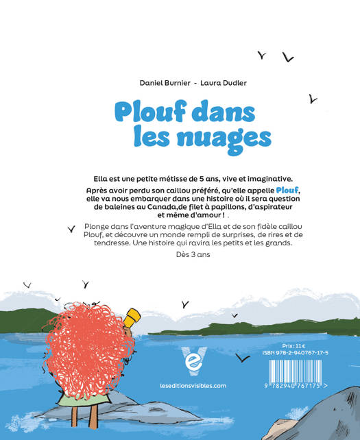 Ella est une petite métisse de 5 ans, vive et imaginative.Après avoir perdu son caillou préféré, qu’elle appelle Plouf, elle va nous embarquer dans une histoire où il sera question de baleines au Canada, de filet à papillons, d’aspirateur et même d’amour !