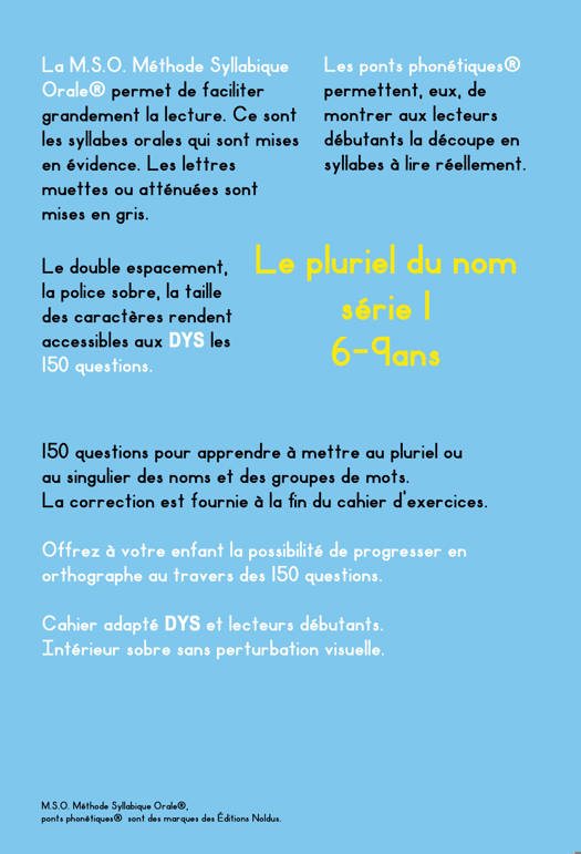 150 questions pour apprendre à mettre au pluriel ou au singulier des noms et des groupes de mots. La correction est fournie à la fin du cahier d’exercices.