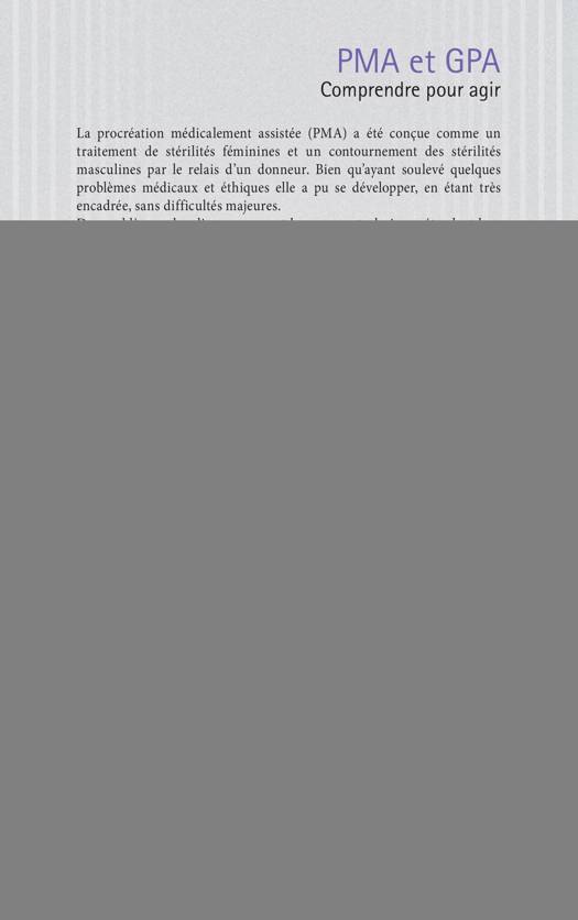 Prolongation du colloque "Les modes scientifiques de procréation", ce livre présente les points de vue de spécialistes de différentes disciplines (médecine, droit, théologie, anthropologie, littérature) et contribue à éclairer les choix et les décisions des personnes concernées. Ce livre est très actuel car l'évolution législative en cours soulève des questions nouvelles : La prise en charge de la PMA pour toutes par la sécurité sociale ne poussera-t-elle pas à rendre responsables d'autres demandes d'ordre non médical d'intervention sur le corps, voire à une corrélation entre homosexualité et pathologie ? Le droit des femmes à la maternité implique celui des hommes à la paternité, qui ne peut se réaliser que par la GPA. Quelles en sont les conséquences ?