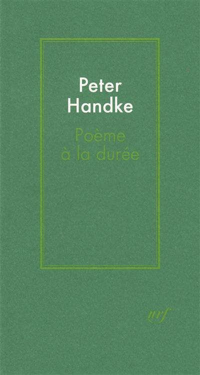 "À la durée, ni essai, ni pièce, ni histoire - à la durée, un poème, comme si elle était un être vivant, corporel, comme si avec elle on pouvait discuter. Le poème comme une offre, une avance, comme s'il fallait seulement que l'un et l'autre disent "oui". Qu'est-ce que la durée,qu'était-elle ? Car elle se fonde sur du passé, elle naît, puisque s'est enfui "le plus fugitif de tous les sentiments", dans le présent et devient futur accompli. Le poème à la durée est un exercice, un exercice spirituel et corporel. La durée n'est pas un cadeau qu'on puisse solliciter, elle est résultat, elle est un état accessible. Un poème à la durée ne veut rien d'autre que prétendre à ce que l'homme ne peut plus exiger depuis sa "chute". Un déroulement dialectique : reconnaître dans l'éphémère, dans le fragile ce qui est durable et le conserver dans un poème, une oeuvre d'art - ce synonyme d'éternité terrestre." Peter Handke