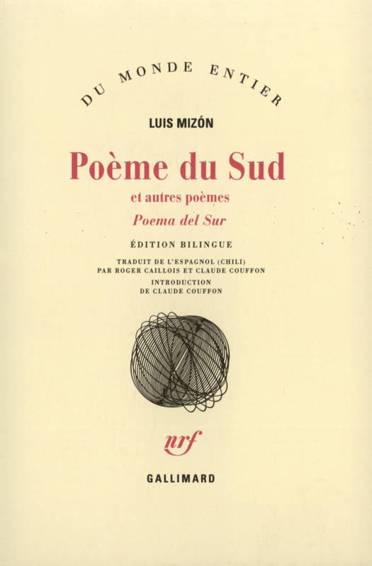 "Roger Caillois lut, traduisit et publia en revues ses premiers poèmes : Terre prochaine (1977) et L'arbre (1978). Depuis, Luis Mizón a écrit Poème du Sud, inspiré par sa terre natale, le Chili, ou, mieux, les régions australes qui lui sont familières. Dans un paysage grandiose, au milieu des volcans et des terres de Chillán, toujours menacées et souvent ravagées par les cataclysmes, l'homme prend pleinement conscience de sa solitude en reconstruisant au jour le jour ce que la nature défait. Sur les plages désertiques ou les côtes abruptes de Valparaíso et de Concepción, avec leurs cimetières de bateaux, leurs épaves, leurs planches et leurs barils vides qu'aucune marée n'emporte, l'érosion et la décomposition permanentes accentuent encore cette ambiance d'abandon. Marin ou paysan, forestier ou paria, l'habitant du Sud se définit pourtant, comme Mizón lui-même, par un attachement aux racines auquel s'ajoutent l'individualisme qui ne méprise pas la solidarité, le culte des chimères, la croyance aux fantômes. Mais n'y a-t-il rien d'autre ? Dans Poème du Sud, Luis Mizón marche au milieu des siens comme à travers une forêt d'ombres dont il cherche la motivation secrète, le mobile inconscient, la quintessence sous les actes et les effets, les folies, les résignations, les marottes. La poésie est pour lui une façon de lever délicatement les masques, d'interroger les labyrinthes creusés sous les apparences, de deviner les signes muets et les appels étouffés, de débusquer l'imaginaire derrière l'écorce rationnelle du réel." Claude Couffon.