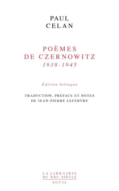Poèmes de Czernowitz est le septième livre de Paul Celan (1920-1970) publié dans « La Librairie du xxie siècle », aux Éditions du Seuil, après sa Correspondance avec Gisèle Celan-Lestrange (2001), Le Méridien & autres proses (2002), Renverse du souffle (2003), sa Correspondance avec Ilana Shmueli (2006), Partie de neige (2007) et Le Temps du cœur, correspondance avec Ingeborg Bachmann (2011).