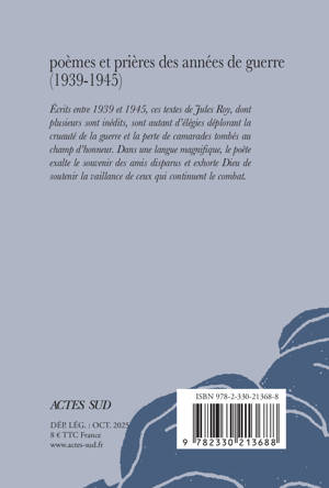 Ecrits entre 1939 et 1945, ces textes de Jules Roy, dont plusieurs sont inédits, sont autant d'élégies déplorant la cruauté de la guerre et la perte de camarades tombés au champ d'honneur. Dans une langue magnifique, le poète exalte le souvenir des amis disparus et exhorte Dieu de soutenir la vaillance de ceux qui continuent le combat.