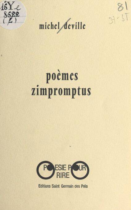 « Poèmes zimpromptus », le troisième recueil de Michel Deville, s’empare de toutes sortes de trucages qui font rire : le jeu de mots, de sons, le calembour, le contresens, les ruses sur l’étymologie, la contrepèterie. La verve du poète ne se lasse pas d’appuyer sur le grotesque automatique des rimes. Avec un plaisir de potache pasticheur, il subtilise à notre patrimoine certains « grands vers » à qui il tord un cou trop solennel. Ses fables d’aujourd’hui ou d’hier, son bestiaire humanisé, ses « conseils » apparemment tout timides, ses récits tendres ou mélos ont beaucoup de finesse et de fraîcheur. Michel Deville s’impose comme un de nos meilleurs poètes comiques.