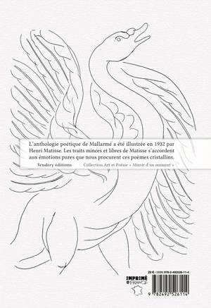 L'anthologie poétique de Stéphane Mallarmé a été illustrée en 1932 par Henri Matisse. Les traits minces et libres de Matisse s'accordent aux émotions pures que nous procurent ces poèmes cristallins. Le recueil illustré Poésies est suivi de deux écrits de Matisse sur ses dessins et ses portraits (deux écrits reproduits avec les dessins de Matisse) et d'une postface culturelle sur "Matisse et le plaisir du livre".