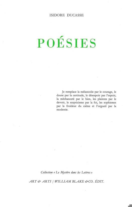 Un texte en prose, brûlot littéraire, issu des oeuvres complètes du comte de Lautréamont.