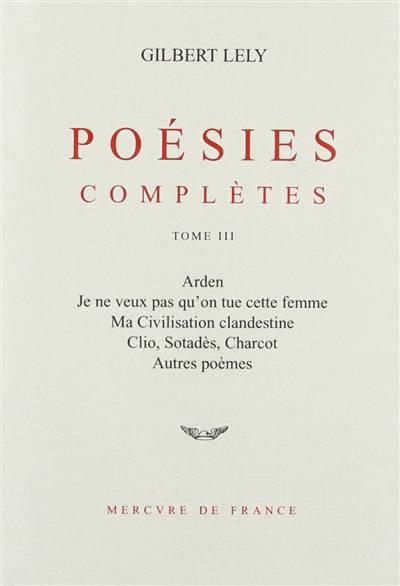 Ce troisième et dernier tome rassemble les recueils et les poèmes les plus subversifs de la maturité de Lely : Ma Civilisation clandestine, qui suscita l'admiration de Char sous l'Occupation mais ne fut jamais imprimé, le poème dramatique Solomonie la Possédée, les Notices d'histoire sadiste, les Poésies sotadiques, les inédits et les pages critiques. La plupart de ces écrits étaient restés secrets. Il a semblé que le siècle dans lequel nous entrons ne pouvait être privé sans dommage des saveurs de liberté, de furie, d'érotisme et, parfois, d'humour transcendant que la poésie oppose aux ossuaires du temps.