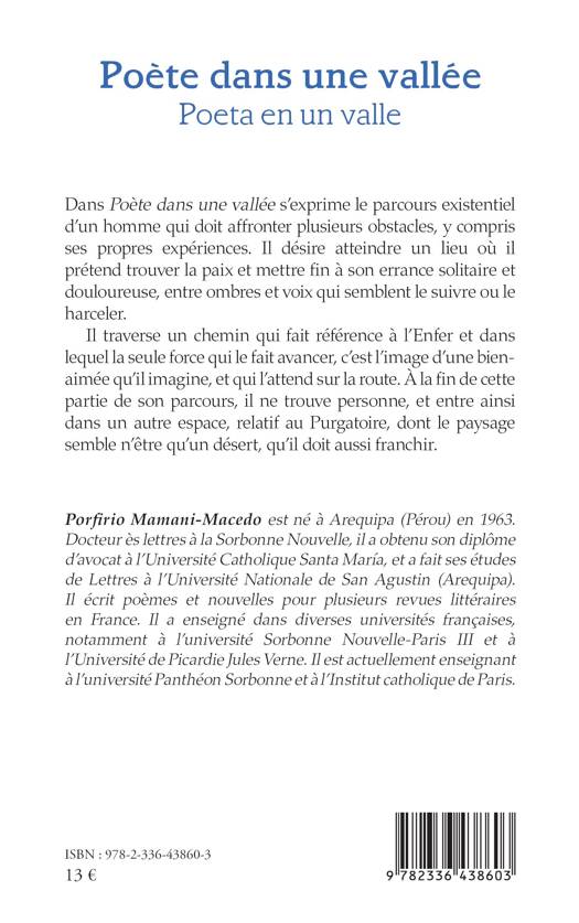 Dans Poète dans une vallée s’exprime le parcours existentiel d’un homme qui doit affronter plusieurs obstacles, y compris ses propres expériences. Il désire atteindre un lieu où il prétend trouver la paix et mettre fin à son errance solitaire et douloureuse, entre ombres et voix qui semblent le suivre ou le harceler. Il traverse un chemin qui fait référence à l’Enfer et dans lequel la seule force qui le fait avancer, c’est l’image d’une bien-aimée qu’il imagine, et qui l’attend sur la route. À la fin de cette partie de son parcours, il ne trouve personne, et entre ainsi dans un autre espace, relatif au Purgatoire, dont le paysage semble n’être qu’un désert, qu’il doit aussi franchir.