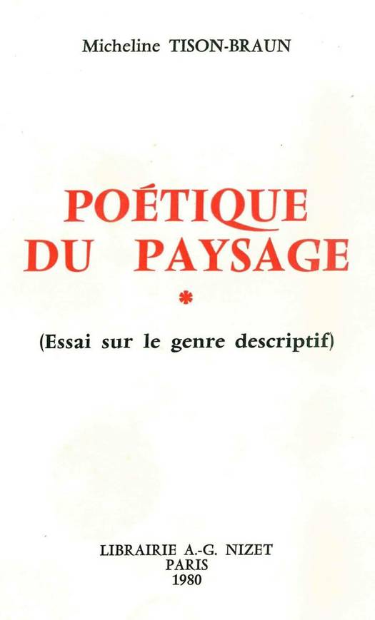 Une analyse de la description en littérature, et plus particulièrement du paysage. Ce "genre", souvent mal aimé dans les lettres par comparaison avec la peinture, est ici réévalué.