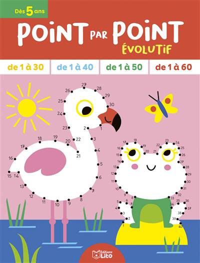 Plus de quarante jeux de points à relier classés en quatre paliers de trente, quarante, cinquante et soixante points pour développer progressivement sa concentration.