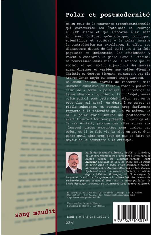 Né au coeur de la tourmente transformationnelle qui caractérise le XIXe siècle, le polar incarne la contradiction par excellence. En effet, ses détracteurs disent de lui qu'il est à la fois populaire et inclassable tandis que les aficionados y voient un genre riche à l'infini, se nourrissant aussi bien de la science que du social. Substituant au terme "roman" policier celui de "forme" policière, l'auteur questionne sa réelle substance. Aurait-il incarné une post modernité avant l'heure ?
