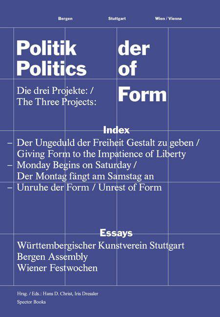 Wie lässt sich eine widerständige Kunst denken, obwohl sie in den ökonomischen Strukturen, die es zu bekämpfen gälte, verstrickt ist? Welches andere Wissen, welche anderen Gemeinschaften kann Kunst hervorbringen? Welche Werkzeuge und Waffen kann sie bereitstellen? Diese Publikation vereint drei gleichermaßen eigenständige wie miteinander verschränkte Projekte, die auf jeweils spezifische Weise die Beziehungen zwischen Kunst, Politik und Wissensbildung untersuchen und neu vermessen: die Ausstellungen Unruhe der Form. Entwürfe des politischen Subjekts im Rahmen der Wiener Festwochen (KuratorInnen Karl Baratta, Stefanie Carp, Matthias Pees, Hedwig Saxenhuber und Georg Schöllhammer), Monday Begins on Saturdayim Rahmen der Bergen Assembly (KuratorInnen Ekaterina Degot und David Riff) und Der Ungeduld der Freiheit Gestalt zu geben(KuratorInnen Hans D. Christ und Iris Dressler) im Württembergischen Kunstverein Stuttgart.
