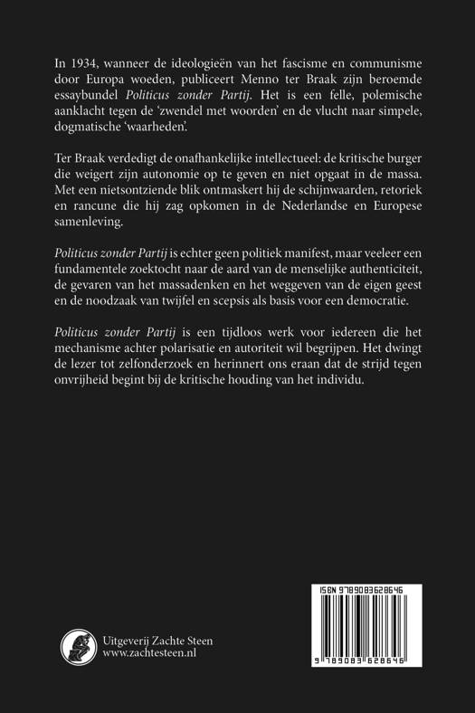 Politicus zonder partij is een tijdloos werk voor iedereen die het mechanisme achter polarisatie en autoriteit wil begrijpen. Het dwingt de lezer tot zelfonderzoek en herinnert ons eraan dat de strijd tegen onvrijheid begint bij de kritische houding van het individu.