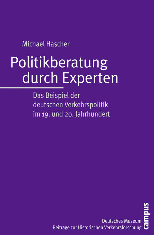 Wenn heute in Deutschland wichtige verkehrspolitische Entscheidungen fallen, sind im Vorfeld immer auch Wissenschaftler beteiligt. Die Strukturen dieser Politikberatung sind Ergebnis eines historischen Prozesses. Diesen untersucht Michael Hascher von den Anfängen im 19. Jahrhundert bis 1972, als unter Verkehrsminister Leber die wichtigsten Strukturen ihre heutige Form fanden.