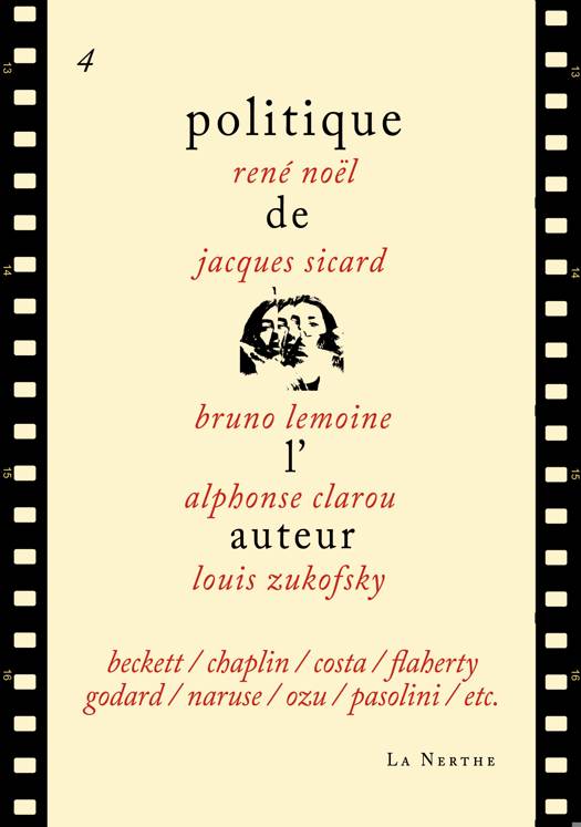 Quatrième collectif auteur du cinéma. Auteurs concernés : Beckett / Chaplin / Pedro Costa / Flaherty / Godard / Naruse / Ozu / Pasolini / etc. Contient une traduction du texte, inédit en français, de Louis Zukofsky sur "Les temps modernes".
