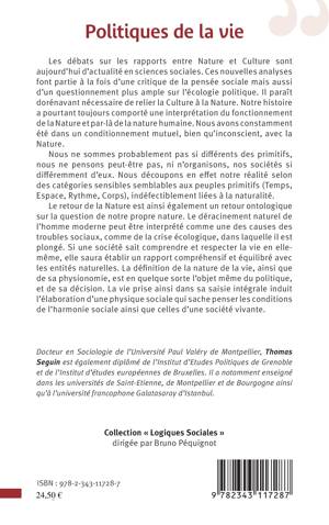 La définition de la nature de la vie, ainsi que de sa physionomie, est, en quelque sorte, l'objet même du politique et de sa décision. Si une société sait comprendre et respecter la vie en elle-même, elle saura établir un rapport compréhensif et équilibré avec les entités naturelles. La vie prise ainsi dans sa saisie intégrale induit l'élaboration d'une physique sociale qui pense les conditions de l'harmonie sociale ainsi que celles d'une société vivante.