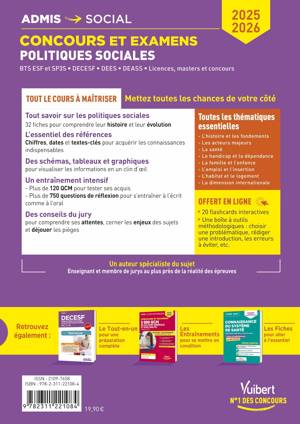 Afin de réussir vos examens et concours 2025-2026 (Licences et Master, DECESF, DEES et DEASS, BTS ESF et SP3S), ce livre fait le point sur toutes les politiques sanitaires et sociales :