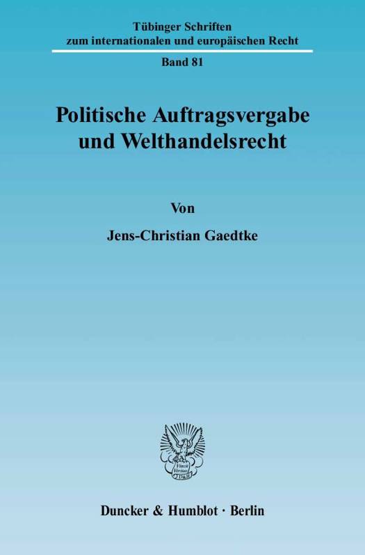 Der Autor zeigt die welthandelsrechtlichen Möglichkeiten und Grenzen "politischer Auftragsvergabe" auf. Er begreift die Problematik als vergaberechtliche Variante des Zielkonflikts zwischen handelsbezogenen und "handelsfremden" Belangen, der das gesamte WTO-Recht durchzieht. Im ersten Teil gewinnt der Verfasser aus Überlegungen u. a. zu Struktur, Funktion und Legitimität der WTO Argumente für die Lösung derartiger Zielkonflikte. Mit dem zweiten Teil schließt sich eine ausführliche Untersuchung der Vorschriften des Übereinkommens über das öffentliche Beschaffungswesen an. Im dritten Teil befasst sich Jens-Christian Gaedtke mit den gegenwärtigen vergaberechtlichen WTO-Reforminitiativen. Er kommt zu dem Schluss, dass das geltende WTO-Recht den Mitgliedstaaten bei handelsfreundlicher Ausgestaltung ihrer Vorschriften durchaus einen gewissen Spielraum zur Verfolgung politischer Ziele bei der Auftragsvergabe einräumt.