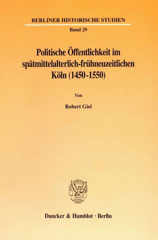 Der Autor geht am Beispiel Kölns der Frage nach, inwieweit sich der städtische Rat an der Wende zum 16. Jahrhundert von seinen gemeindlichen Wurzeln entfernt und zu einer auf Befehl und Gehorsam basierenden Obrigkeit gewandelt hatte. Zu diesem von der Forschung stark diskutierten Problem wählt Giel einen bislang weitgehend unbeachteten Zugang. Er fragt nach der den unterschiedlichen Interessengruppen in der Stadt jeweils zur Verfügung stehenden Möglichkeit zur Kommunikation und ihrem Anteil an dem Raum, in dem diese Kommunikation stattfand, der innerstädtischen Öffentlichkeit. Die Analyse dieser Öffentlichkeit läßt erkennen, daß sowohl der zur Ratswahl berechtigten Gemeinde auf den »Gaffeln« als auch der in den Zünften organisierten weiteren Einwohnerschaft Kölns bis zur Mitte des 16. Jahrhunderts erhebliche Mitsprachemöglichkeiten verblieben. Auseinandersetzungen des Rates mit diesen Gruppen waren vielmehr von der Unfähigkeit der städtischen Führung zu planendem politischem Vorgehen und ihrer daher insgesamt reaktiven Handlungsweise geprägt. Trotz seiner sich bereits sehr viel früher herausbildenden sozialen Abschließung gelangte der Kölner Rat hinsichtlich seiner obrigkeitlichen Stellung somit erst unter den verschärften wirtschaftlichen und konfessionellen Bedingungen des ausgehenden 16. Jahrhunderts zu einer in Selbstverständnis und Handlungsweise von der Gemeinde gelösten neuen Qualität.
