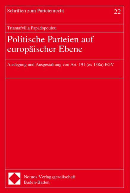 Die politischen Parteien haben im Laufe des europäischen Integrationsprozesses eine übernationale Kooperation entwickelt, die sich in der Gründung von Europäischen Politischen Parteien (EPP) widerspiegelt. Die Bedeutung der EPP als Faktor der europäischen Integration, insbesondere hinsichtlich der Herausbildung eines europäischen Bewußtseins und der politischen Artikulation der europäischen Bürger schlug sich auch in der Einführung von Art. 191 (ex 138a) EGV nieder. Das Werk untersucht den europäischen Parteienartikel erstmals umfassend aus rechtswissenschaftlicher Sicht. Im Anschluß an Überlegungen zur Rolle der Parteien im Rahmen einer europäischen Demokratie und einer Bestandsaufnahme der existierenden europäischen Parteien und ihrer Vorgeschichte legt die Verfasserin den Art. 191 auf rechtsdogmatischer Grundlage aus. Hierauf aufbauend erarbeitet sie überzeugende Vorschläge zu seiner weiteren Ausgestaltung. Der Anhang enthält einen Entwurf für ein europäisches Parteienstatut. Das Werk, das mit dem Preis der "Foundation for the Advancement of European Studies (FAES)" ausgezeichnet wurde, richtet sich an Wissenschaftler, insbesondere aber auch an Parteienvertreter und Referenten in Ministerien.