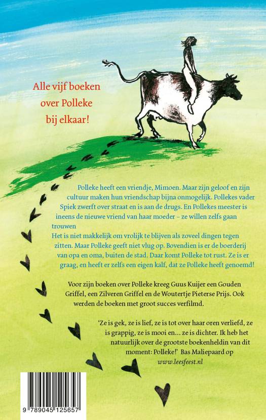 Het is niet makkelijk om vrolijk te blijven als zo veel dingen tegen zitten. Maar Polleke geeft niet vlug op. Bovendien is er de boerderij van opa en oma, buiten de stad. Daar komt Polleke tot rust. Ze is er graag, en heeft er zelfs een eigen kalf, dat ze Polleke heeft genoemd!