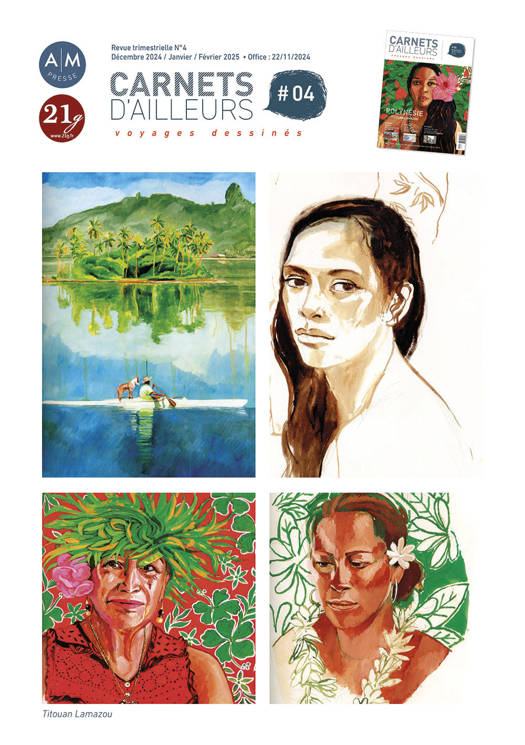 Carnets d'ailleurs, c'est la nouvelle revue papier qui vous emmène à la découverte du monde comme vous ne l'avez jamais vu, à travers le regard des carnettistes les plus talentueux. Carnets d'ailleurs, c'est la rencontre du voyage et du dessin comme un art de vivre, des voyages où l'on prend le temps de contempler, d'échanger... Carnets d'ailleurs, c'est une revue de 172 pages conçue avec passion, qui proposera tous les trois mois des récits de voyage et de découverte, dessinés au bout du monde ou au coin de votre rue. Dans le numéro 3 : LAMAZOU, ZEP, SIMON...