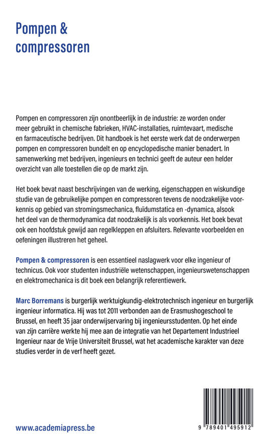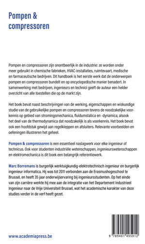Pompen en compressoren zijn onontbeerlijk in de industrie: ze worden onder meer gebruikt in chemische fabrieken, HVAC-installaties, ruimtevaart, medische en farmaceutische bedrijven. Dit handboek is het eerste werk dat de onderwerpen pompen en compressoren bundelt en op encyclopedische manier benadert. In samenwerking met bedrijven, ingenieurs en technici geeft de auteur een helder overzicht van alle toestellen die op de markt zijn.
