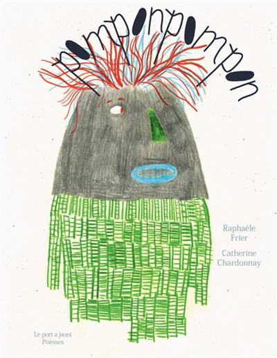 Pomponpompon est un recueil de poésies-comptines pour les tout petits. La consigne donnée à Raphaële Frier était le jeu ! Jeux de mots, jeux d’enfants, comptines d’aujourd’hui qui jouent avec celles d’autrefois. Pour autant, la poète ne s’est pas cantonnée à compter sur les doigts ou énumérer les cris d’animaux. Au contraire, elle fait surgir de son imaginaire un monde à la fois magique et ludique, surprenant et émouvant, elle nous entraîne dans le monde inédit des mariés du fourbi, elle arrose son petit frère, devient méchantante et s’enmourêve, joue à la marelle jusqu’au ciel, compte les pompons et ron et ron petit fripon de pompon. Un autre monde existe. Une fois écrits, les poèmes ont rencontré une série de pompons dessinés par Catherine Chardonnay : pompons chat, pompons en chapeau, pompons oiseau ou pompons peur. Les dessins à la mine de plomb et crayons de couleur sont comme des masques qui peuplent notre imaginaire d’enfants, des masques avec des pompons !