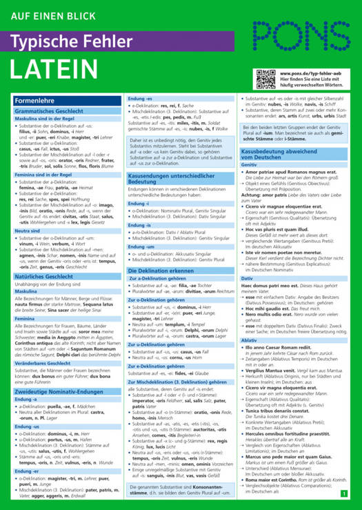 3. PONS Auf einen Blick Typische Fehler Latein