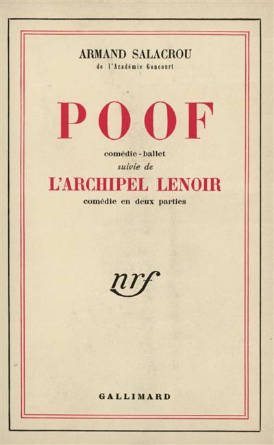 Poof révèle les mystères de la publicité ! Non pas que Salacrou ait été un spécialiste lorsqu'il écrivit cette pièce ; il entrevoyait alors plutôt les possibilités de la réclame que ses réalisations, et ,en même temps il en imaginait les répercussions lointaines : il en résulta cette pièce, qu'aucun directeur de théâtre ne "reconnut" à l'époque. "II faut inventer non des objets ou des produits à vendre, il faut inventer des clients." À partir de cet axiome, découvert par Poof dont on n'accepte pas les prospectus distribués gratuitement, se développe une "Comédie humaine" dont la conclusion ne peut être que la rencontre de Poof et du représentant de Dieu sur cette terre (en Occident). Poof est une des premières pièces de Salacrou ; L'Archipel Lenoir, une des dernières. Toutes deux, à vingt ans de distance, posent, au fond, les mêmes problèmes ; ce ne sont pas ceux de la publicité, bien sûr, qui se présentent dans L'Archipel Lenoir, un cas de "défaillance familiale". Mais le même traitement logique et impitoyable, la même "vue" vers la métaphysique à travers la farce, en font deux des plus représentatives parmi les pièces d'Armand Salacrou.