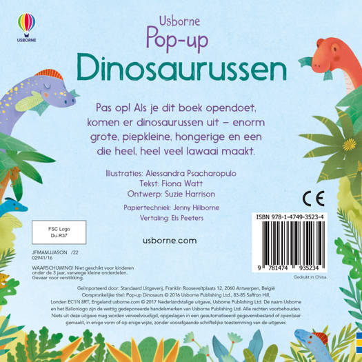Pas op! Als je dit boek opendoet, komen er dinosaurussen uit – enorm grote, piepkleine, hongerige en een die heel, heel veel lawaai maakt.