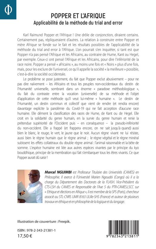 La relation à construire entre Popper et mère Afrique se fonde sur le fait et les résultats possibles de l'applicabilité de la méthode du trial and error à l'Afrique. Popper a pensé « africains », au moins une fois et « Noirs » plus d'une fois, mais, pour les exclure de l'universel, ce qu'il appelle la société « la meilleure » possible, c'est-à-dire la société occidentale. Le problème se pose justement, du fait que Popper exclut abusivement les Africains et tous les peuples non-occidentaux du destin de l'Humanité universelle,