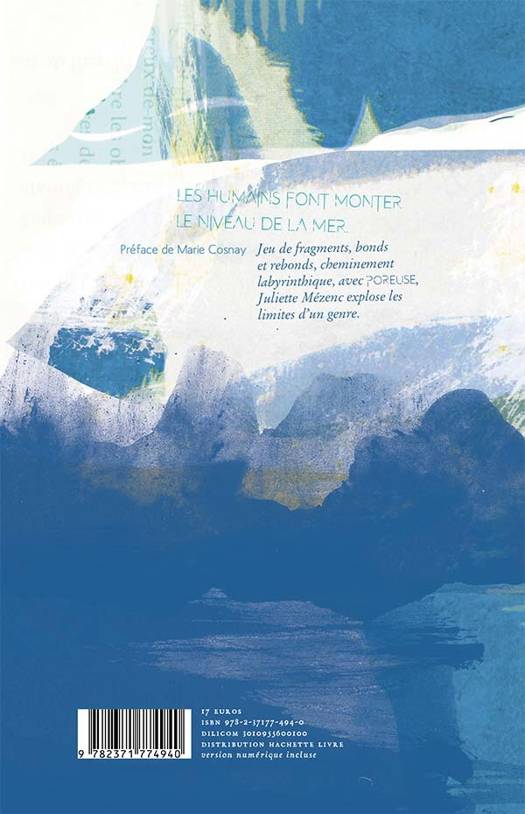 « Les humains font monter le niveau de la mer » Jeu de fragments, bonds et rebonds, creuse e de chemins labyrinthiques, avec Poreuse, Juliette Me zenc explose les limites d’un genre.
