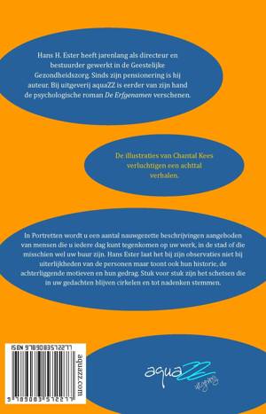 In Portretten wordt u een aantal nauwgezette beschrijvingen aangeboden van mensen die u iedere dag kunt tegenkomen op uw werk, in de stad of die misschien wel uw buur zijn. Hans Ester laat het bij zijn observaties niet bij uiterlijkheden van de personen maar toont ook hun historie, de achterliggende motieven en hun gedrag. Stuk voor stuk zijn het schetsen die in uw gedachten blijven cirkelen en tot nadenken stemmen.