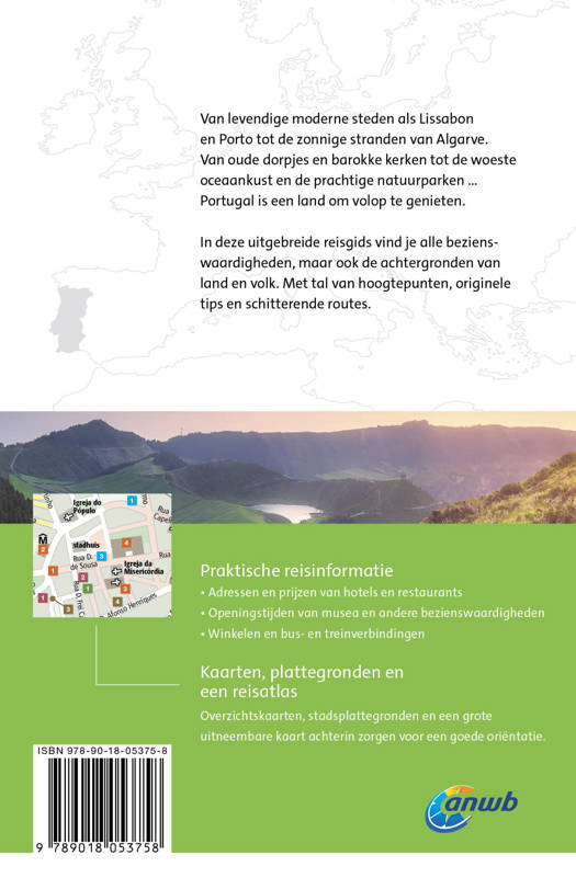 De uitgebreide reisgids Portugal telt meer dan 400 pagina’s boordevol hoogtepunten, originele tips, schitterende wandelroutes en alles over de achtergronden van land en volk. Daarnaast alle praktische informatie zoals openingstijden van musea, tips voor overnachtingen en vervoerstijden. Inclusief stadsplattegronden, overzichtskaarten en achterin een uitneembare kaart. Kortom: een onmisbare ANWB gids voor een geweldige rondreis door Portugal!