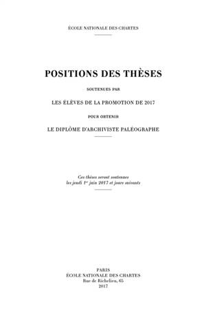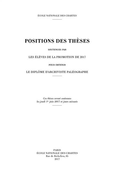 Positions des thèses soutenues par les élèves de la promotion de 2017 pour obtenir le diplôme d'archiviste paléographe