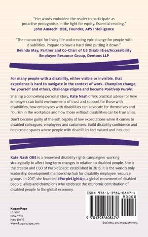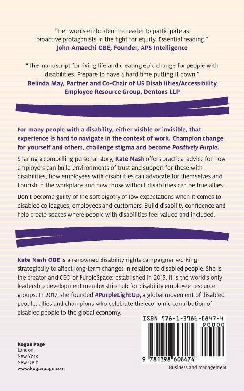 Ensure that your company or organization doesn't become guilty of the soft bigotry of low expectations when it comes to disabled employees and customers. Learn from your disabled staff and consumers and be equipped to be a better and more dynamic organization. Kate Nash, founder of #PurpleLightUp - a global movement which celebrates the economic contribution of employees with disability - will help you understand how any organization can ensure disabled staff and consumers are included and valued. Telling a fascinating story of how to make change happen and recognizing that any kind of transformation requires knowledge, determination and hard yards of campaigning, networking and deal making, you will learn how to build disability confidence throughout your organization. Positively Purple allows disabled workers to claim their rightful place centre stage as just another valuable member of the team.We publiceren alleen reviews die voldoen aan de voorwaarden voor reviews. Bekijk onze voorwaarden voor reviews.