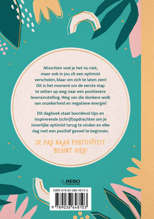 Misschien voel je het nu niet, maar ook in jou zit een optimist verscholen, klaar om zich te laten zien! Dit is het moment om de eerste stap te zetten op weg naar een positievere levensinstelling. Weg van die donkere wolk van onzekerheid en negatieve energie! Dit dagboek staat boordevol tips en inspirerende (schrijf)opdrachten om je innerlijke optimist terug te vinden en elke dag met een positief gevoel te beginnen. Je pad naar positiviteit begint hier!