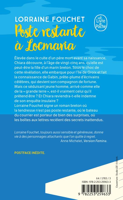 Lorraine Fouchet signe un roman breton où la tendresse ne reste pas poste restante, où le bateau du courrier est porteur de bien des surprises, où les boîtes aux lettres recèlent des secrets inattendus.