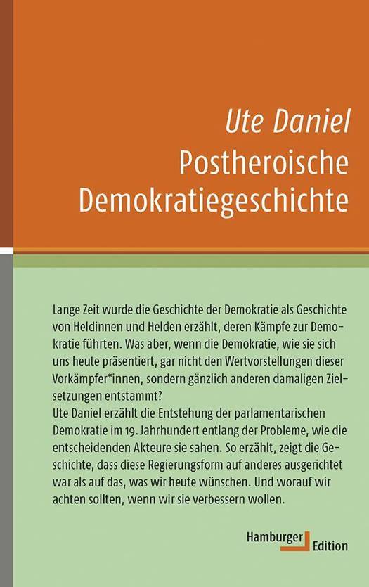 Tatsächlich gab es diese mutigen Männer und Frauen, diese Protestbewegungen und Wahlrechtskämpfe; ihnen allen jedoch ist gemein, dass ihr Einfluss auf die real existierende Politik des 19. Jahrhunderts marginal war. Die parlamentarische Regierungsform ging aus gänzlich anders gelagerten Gründen hervor. Ihnen geht die Historikerin in ihrer postheroischen Politikgeschichte nach.