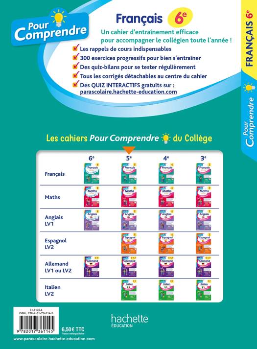 + Des QUIZ INTERACTIFS gratuits sur : parascolaire.hachette-education.com + un mémento détachable avec les tableaux de conjugaison de référence + le Livret Parents avec tous les corrigés et des conseils pratiques pour bien accompagner votre enfant