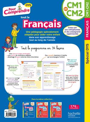 une orthophoniste et des enseignants expérimentés, propose une pédagogie spécialement adaptée, notamment dans sa mise en pages (police de caractères ajustée et davantage d’espace entre les mots et les lettres), pour aider votre enfant dans son apprentissage tout au long de l’année.