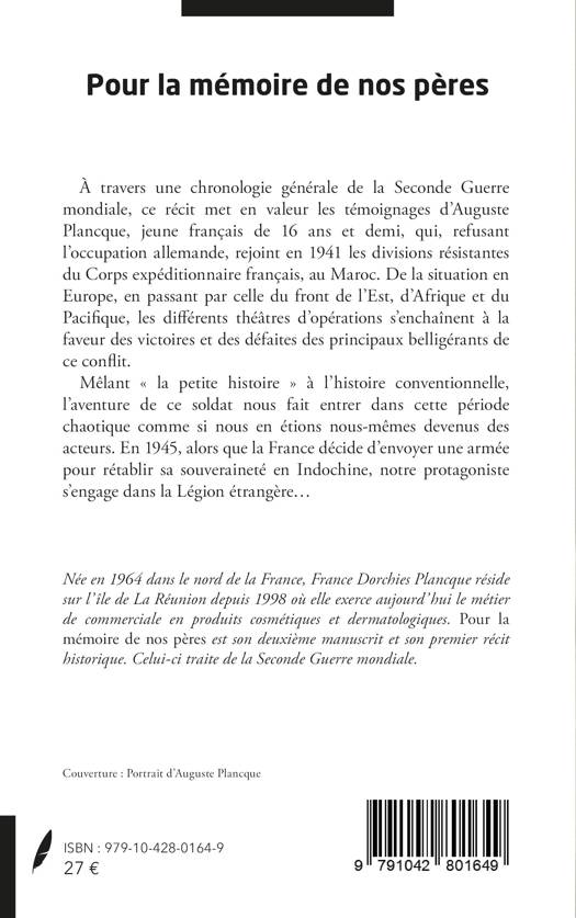 À travers une chronologie générale de la Seconde Guerre mondiale, ce récit met en valeur les témoignages d’Auguste Plancque, jeune français de 16 ans et demi, qui, refusant l’occupation allemande, rejoint en 1941 les divisions résistantes du Corps expéditionnaire français, au Maroc. De la situation en Europe, en passant par celle du front de l’Est, d’Afrique et du Pacifique, les différents théâtres d’opérations s’enchaînent à la faveur des victoires et des défaites des principaux belligérants de ce conflit. Mêlant « la petite histoire » à l’histoire conventionnelle, l’aventure de ce soldat nous fait entrer dans cette période chaotique comme si nous en étions nous-mêmes devenus des acteurs. En 1945, alors que la France décide d’envoyer une armée pour rétablir sa souveraineté en Indochine, notre protagoniste s’engage dans la Légion étrangère…