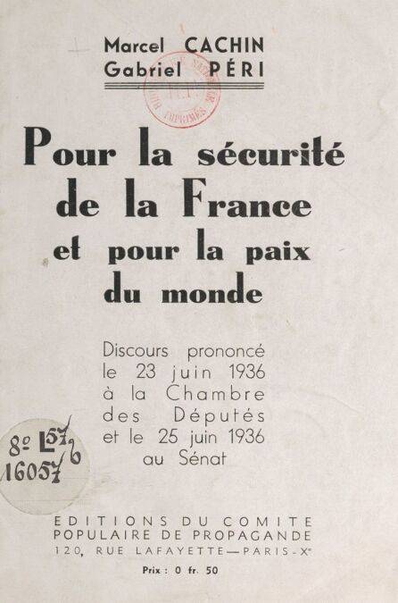 Discours prononcé le 23 juin 1936 à la Chambre des députés et le 25 juin 1936 au Sénat
