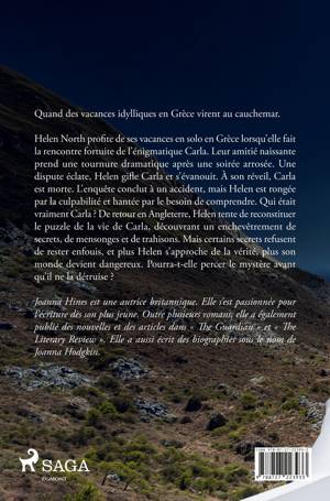 Quand des vacances idylliques en Grèce virent au cauchemar. Helen North profite de ses vacances en solo en Grèce lorsqu'elle fait la rencontre fortuite de l'énigmatique Carla. Leur amitié naissante prend une tournure dramatique après une soirée arrosée. Une dispute éclate, Helen gifle Carla et s'évanouit. À son réveil, Carla est morte. L'enquête conclut à un accident, mais Helen est rongée par la culpabilité et hantée par le besoin de comprendre. Qui était vraiment Carla ? De retour en Angleterre, Helen tente de reconstituer le puzzle de la vie de Carla, découvrant un enchevêtrement de secrets, de mensonges et de trahisons. Mais certains secrets refusent de rester enfouis, et plus Helen s'approche de la vérité, plus son monde devient dangereux. Pourra-t-elle percer le mystère avant qu'il ne la détruise ?