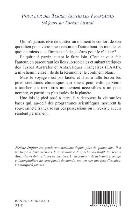 Qui n'a jamais rêvé de quitter un moment le confort de son quotidien pour vivre une aventure à l'autre bout du monde, et quoi de mieux que l'immensité des océans pour le réaliser ? Et quitte à partir, autant le faire loin. C'est ce qu'a fait l'auteur, en parcourant les îles subtropicales et subantarctiques françaises des TAAF, à mi-chemin entre l'île de la Réunion et le continent blanc. Mais le voyage n'est pas facile, et il aura fallu braver les pires conditions climatiques qui soient pour enfin parvenir à toucher ces territoires uniquement accessibles à un petit nombre, et parmi les plus isolés de la planète. Une fois le pied posé à terre, il y découvre la vie sur les bases qui, au-delà des programmes scientifiques, assurent la souveraineté française sur ces possessions où il n'existe aucun résident permanent.