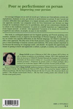 Cet ouvrage trilingue est un outil de travail qui s'adresse aux francophones et anglophones qui désirent se perfectionner en persan. Il met l'accent sur certaines difficultés spécifiques à la langue persane et les cinquante textes proposés offrent aux lecteurs un large éventail de vocabulaire relatif à la vie quotidienne, ainsi qu'une connaissance étendue de la culture et des traditions iraniennes. Un livre pour apprendre le persan, mais aussi un support pour connaître et apprécier cette riche culture.